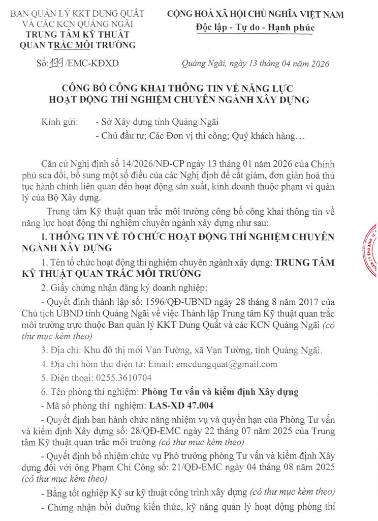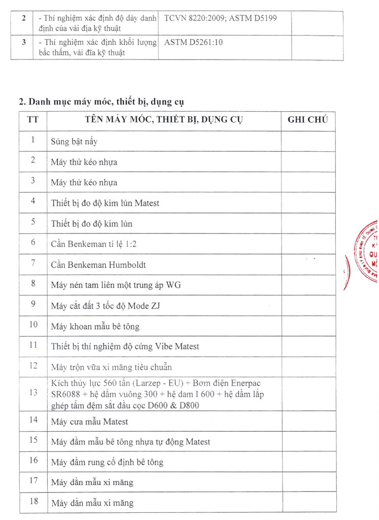- Công bố công khai Thông tin về năng lực hoạt động thí nghiệm chuyên nghành xây dựng