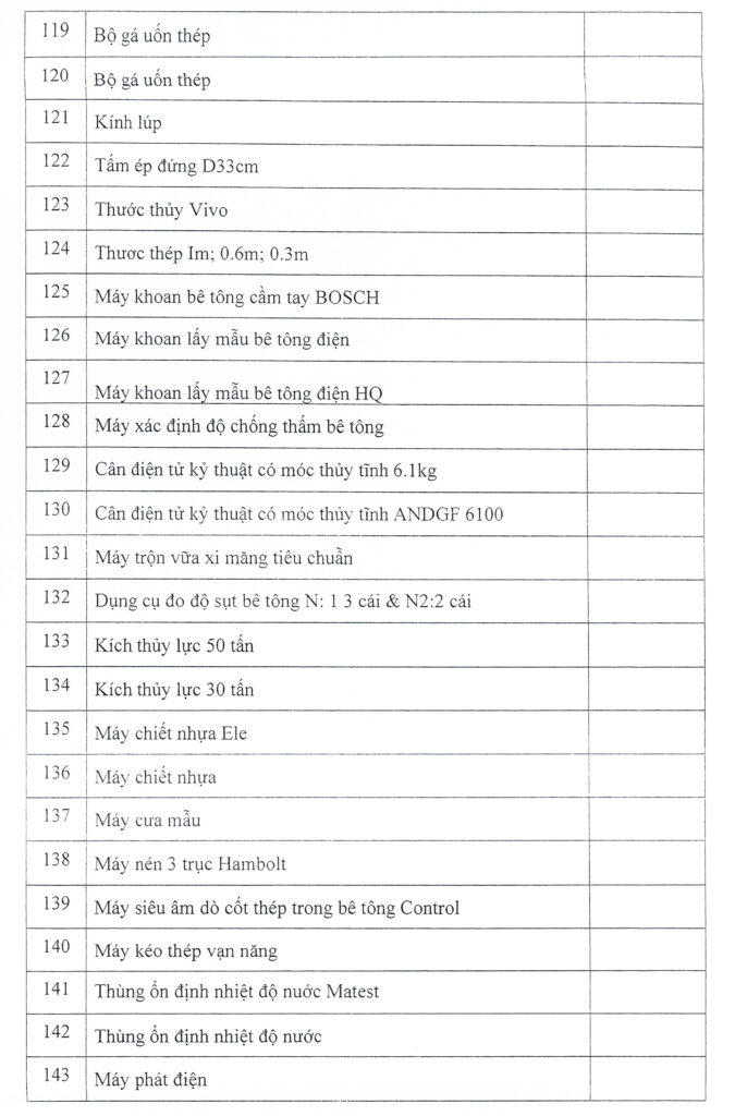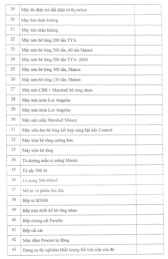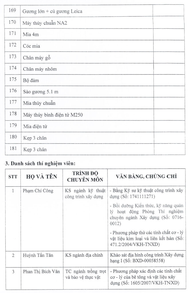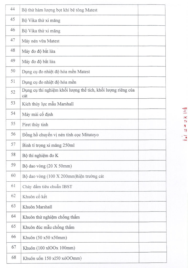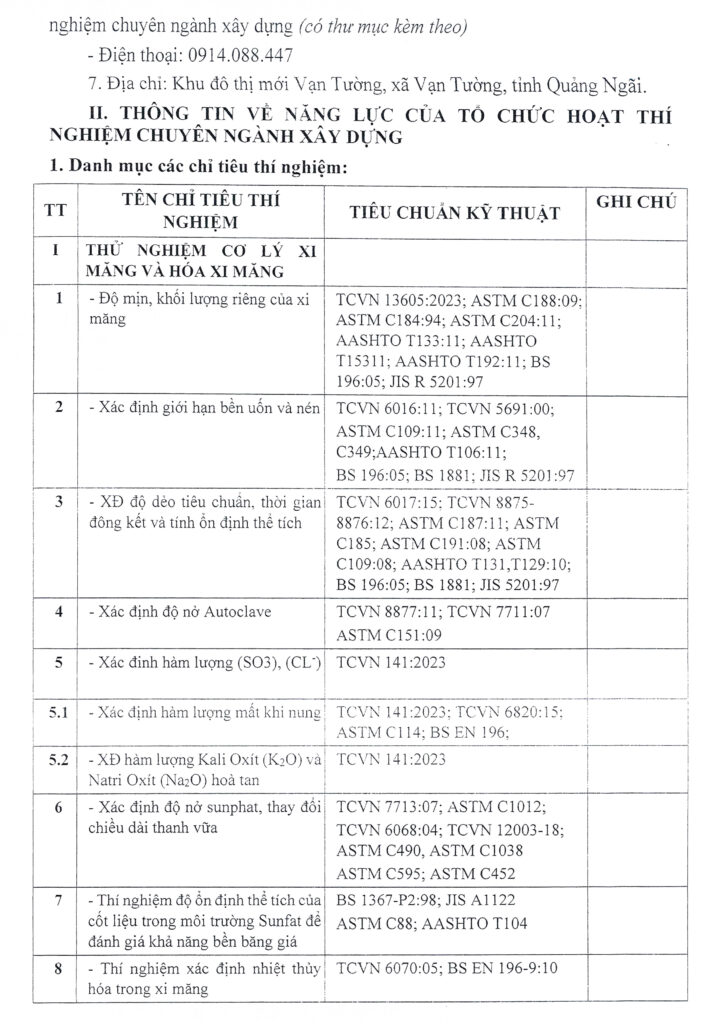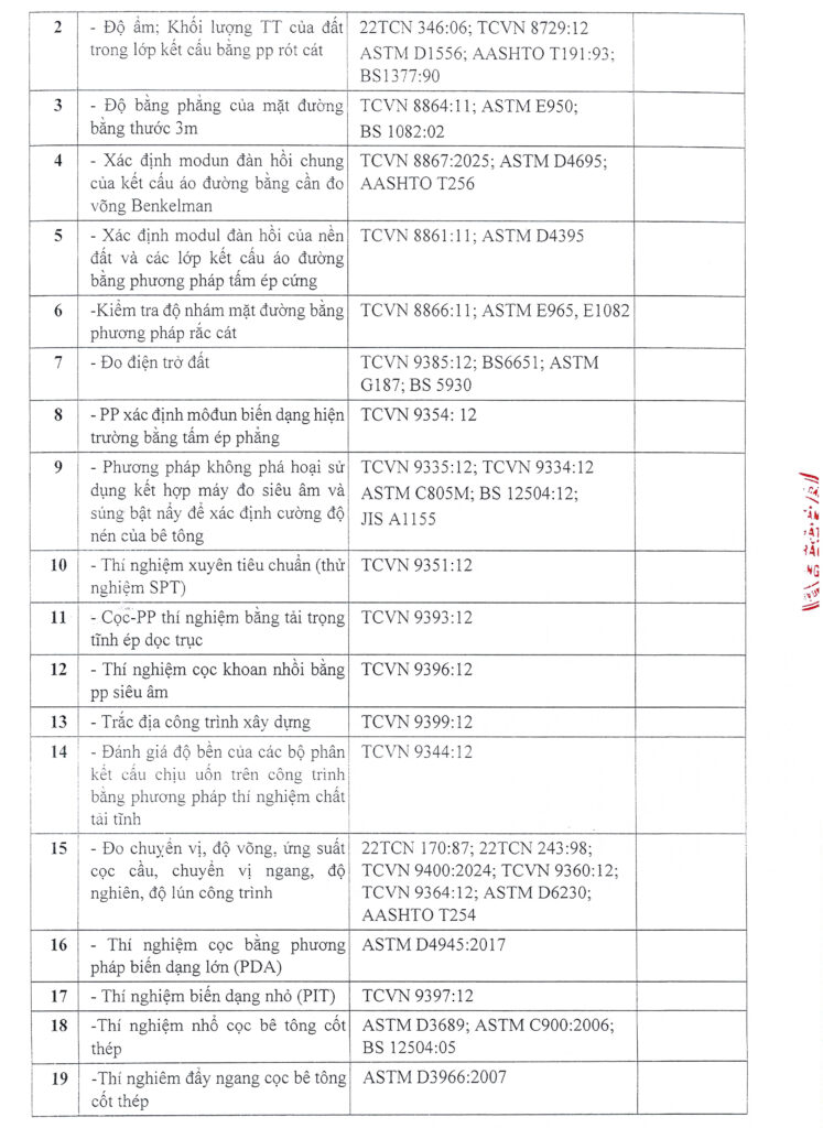 Công bố công khai Thông tin về năng lực hoạt động thí nghiệm chuyên nghành xây dựng