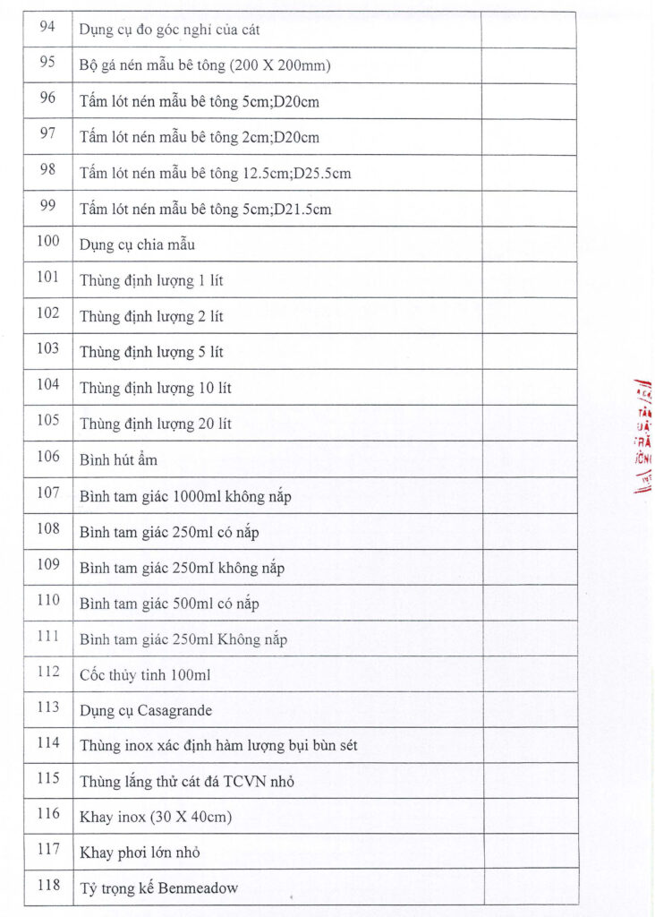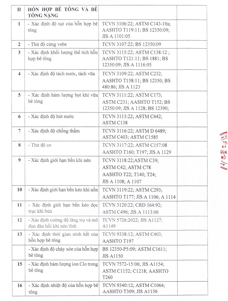 - VV thay đổi Mã số phòng thí nghiệm: LAS-XD 350 thành LAS-XD 47.004